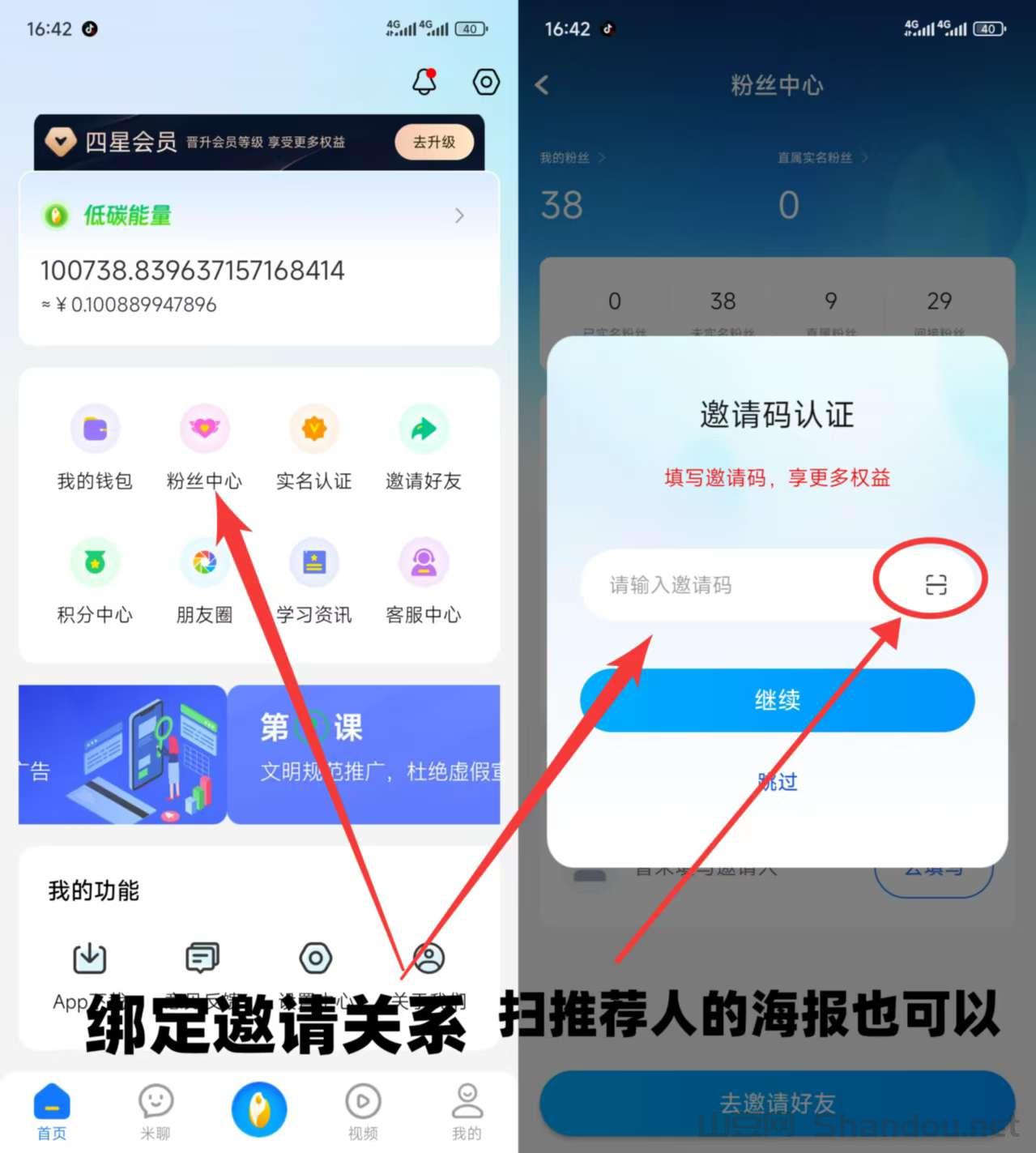 一定要绑定邀请关系,否则无团队分洪,看视频广告无收益。