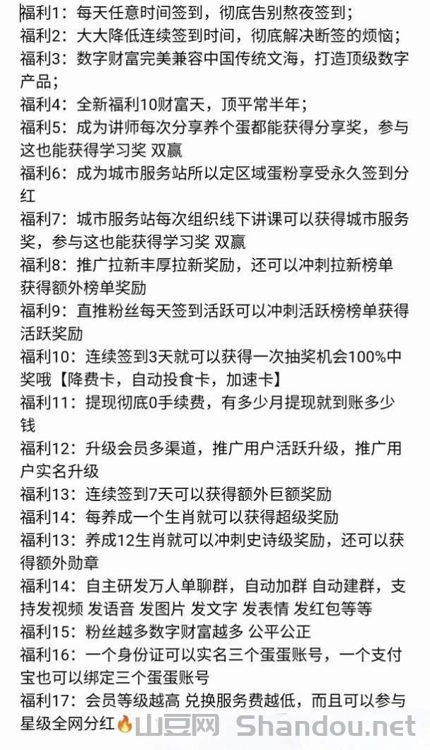 正文 养个蛋~一个个模式稳定零撸项目首选! admin V管理员 /01-04/4阅读/0评论 0104 养个蛋~一个个模式稳定零撸项目首选! 每日六个广告签到启动赚取能量值 能量值每日增值每日增加收益叠加增值 同时还能养成十二生肖赚能量 每签到七天可以获得养成道具 玩法多样收益多多 声明:本站提供的内容信息和网络资源均来自网络收集整理和用户投稿,仅限用于学习和研究目的,不得将上述内容用于商业或者非法用途,否则后果自负,版权争议与本站无关。若为网络资源,用户须在下载后24小时内删除,若您喜欢该网络资源,请支持正版,付费购买后可得到更好的正版服务。我们非常重视版权问题,如有侵权请与我们联系处理。